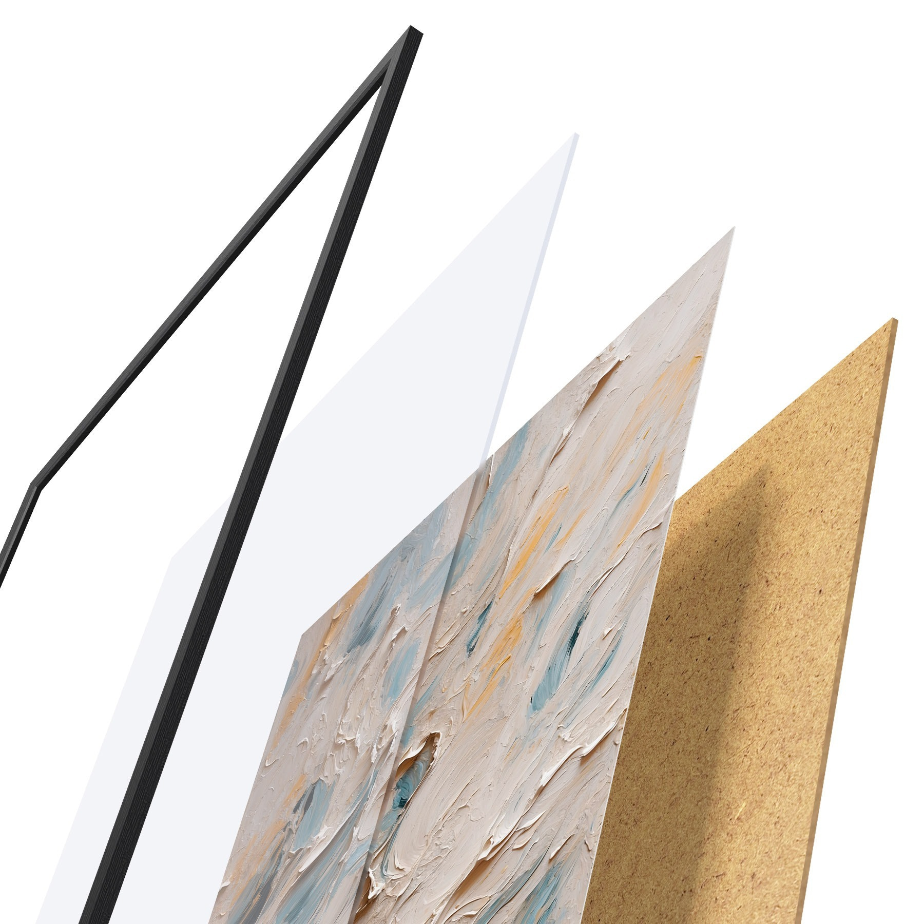 Plakāts sastāv no rāmja, pleksstikla, iespiestā attēla un skaidu plātnes pamatnes. Plakātu var uzreiz piekarināt pie sienas, pateicoties aizmugurē esošajiem stiprinājumiem.