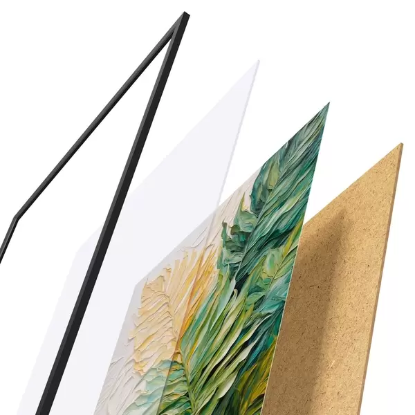 Plakāts sastāv no rāmja, pleksstikla, iespiestā attēla un skaidu plātnes pamatnes. Plakātu var uzreiz piekarināt pie sienas, pateicoties aizmugurē esošajiem stiprinājumiem.