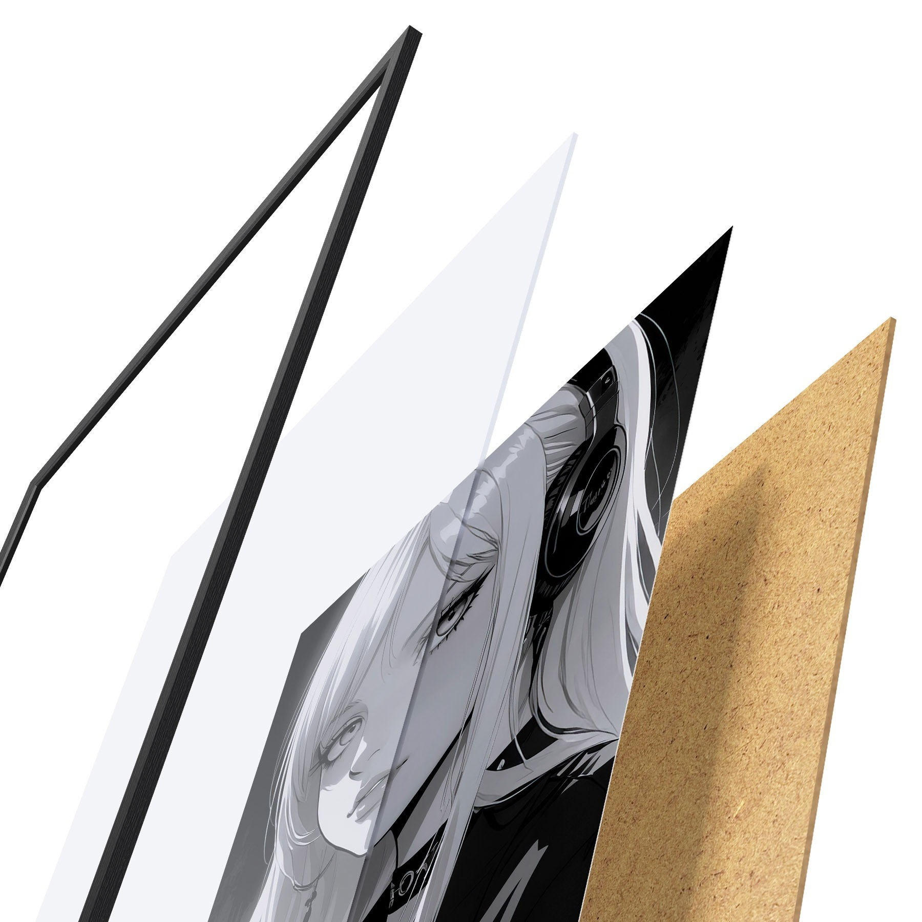 Plakāts sastāv no rāmja, pleksstikla, iespiestā attēla un skaidu plātnes pamatnes. Plakātu var uzreiz piekarināt pie sienas, pateicoties aizmugurē esošajiem stiprinājumiem.