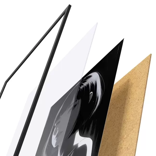 Plakāts sastāv no rāmja, pleksstikla, iespiestā attēla un skaidu plātnes pamatnes. Plakātu var uzreiz piekarināt pie sienas, pateicoties aizmugurē esošajiem stiprinājumiem.