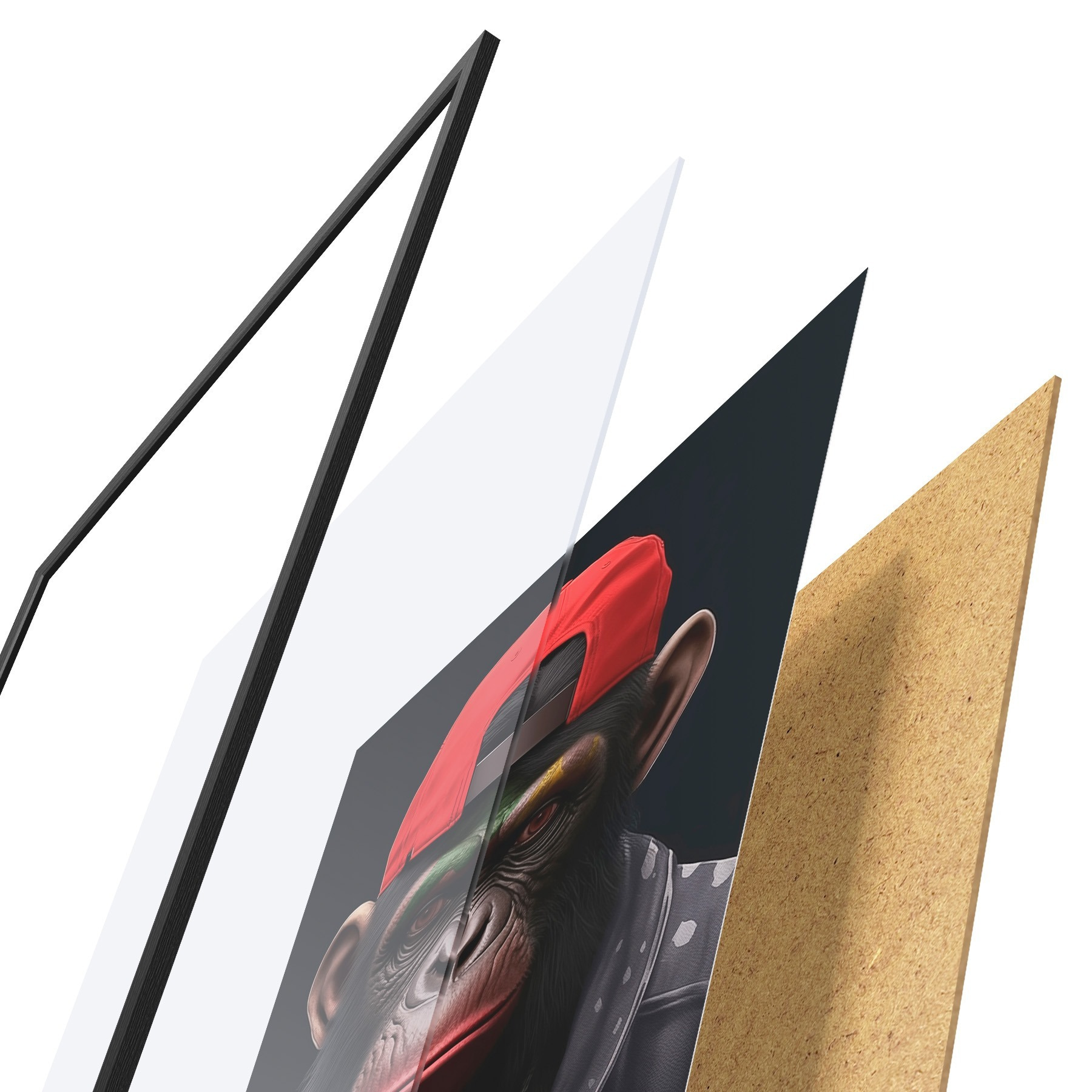 Plakāts sastāv no rāmja, pleksstikla, iespiestā attēla un skaidu plātnes pamatnes. Plakātu var uzreiz piekarināt pie sienas, pateicoties aizmugurē esošajiem stiprinājumiem.