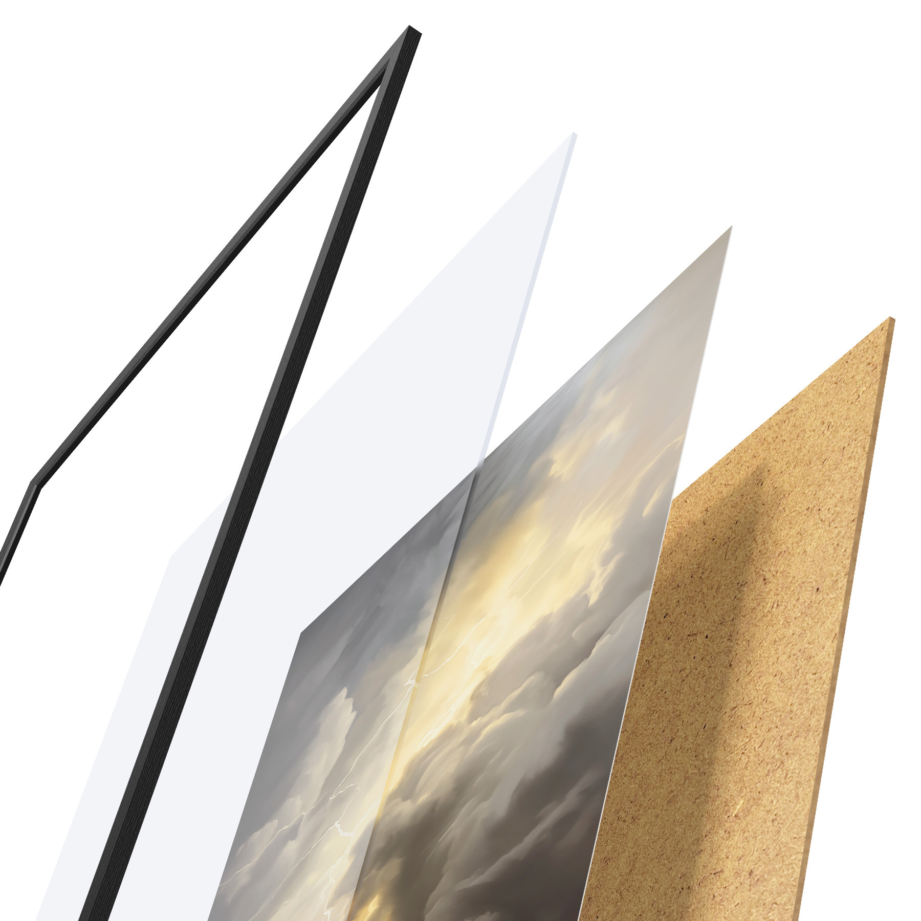 Plakāts sastāv no rāmja, pleksstikla, iespiestā attēla un skaidu plātnes pamatnes. Plakātu var uzreiz piekarināt pie sienas, pateicoties aizmugurē esošajiem stiprinājumiem.