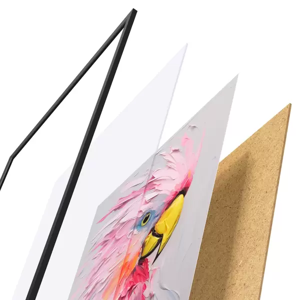 Plakāts sastāv no rāmja, pleksstikla, iespiestā attēla un skaidu plātnes pamatnes. Plakātu var uzreiz piekarināt pie sienas, pateicoties aizmugurē esošajiem stiprinājumiem.