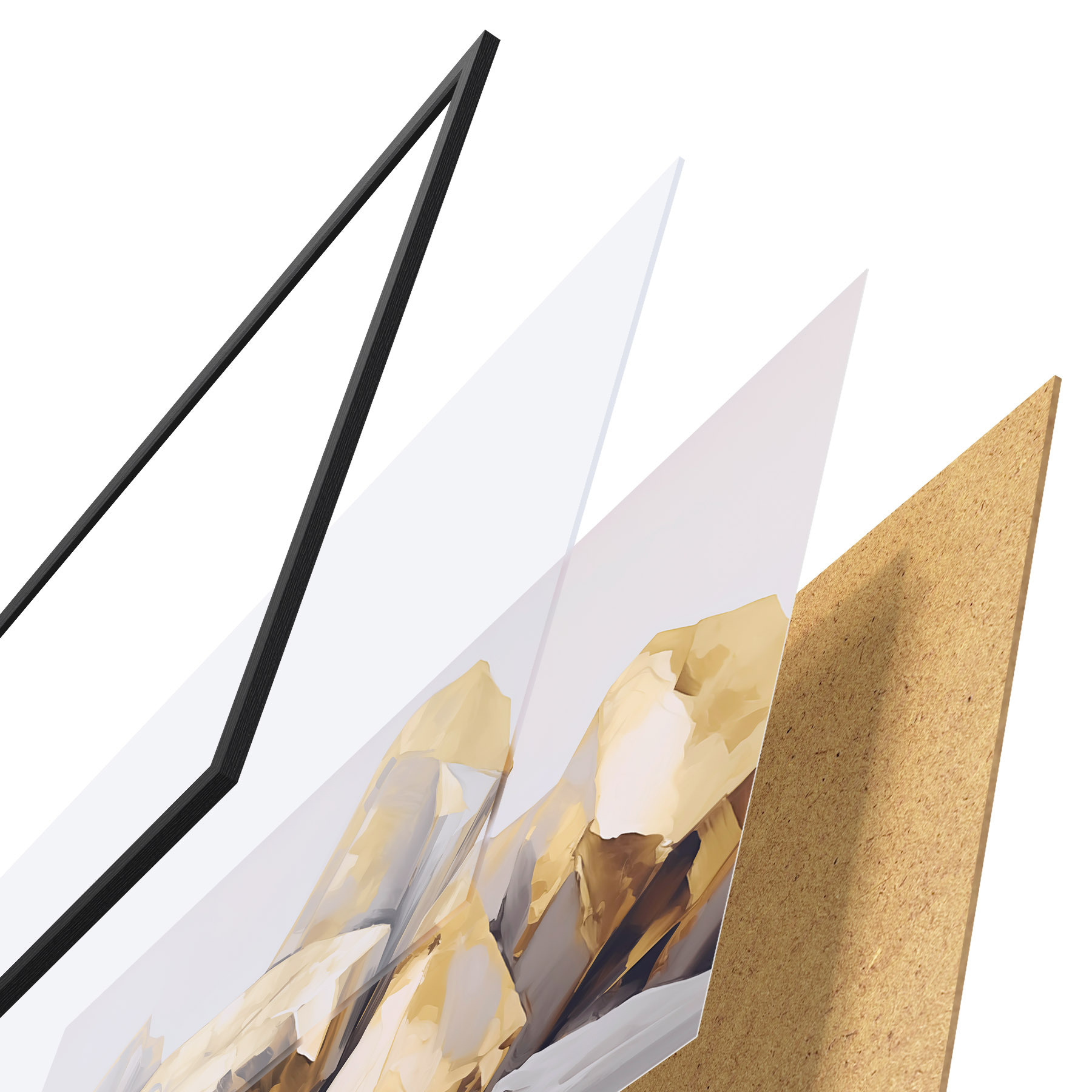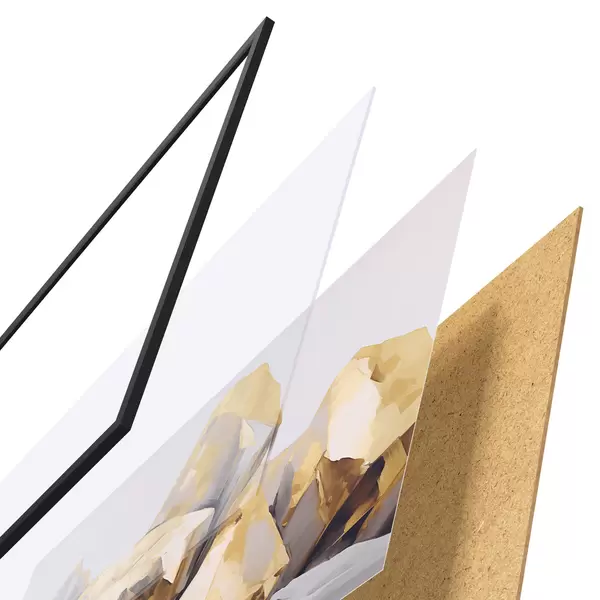 Plakāts sastāv no rāmja, pleksstikla, iespiestā attēla un skaidu plātnes pamatnes. Plakātu var uzreiz piekarināt pie sienas, pateicoties aizmugurē esošajiem stiprinājumiem.
