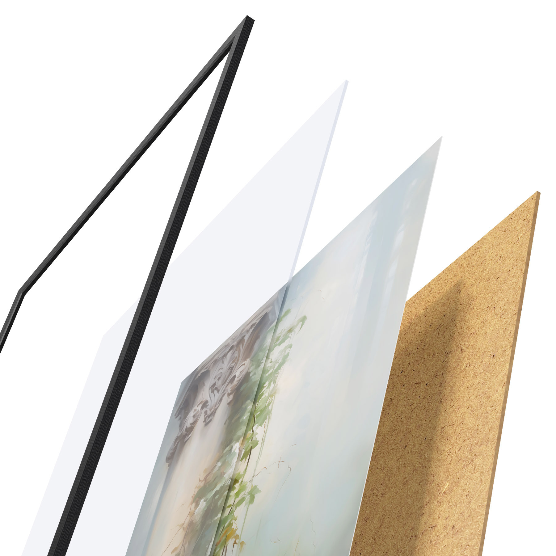 Plakāts sastāv no rāmja, pleksstikla, iespiestā attēla un skaidu plātnes pamatnes. Plakātu var uzreiz piekarināt pie sienas, pateicoties aizmugurē esošajiem stiprinājumiem.