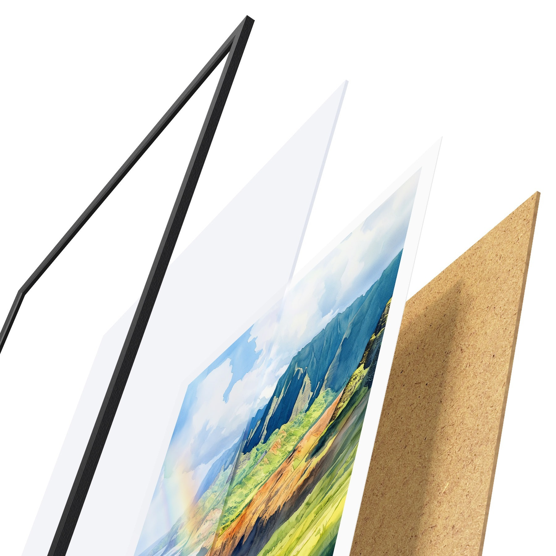 Plakāts sastāv no rāmja, pleksstikla, iespiestā attēla un skaidu plātnes pamatnes. Plakātu var uzreiz piekarināt pie sienas, pateicoties aizmugurē esošajiem stiprinājumiem.