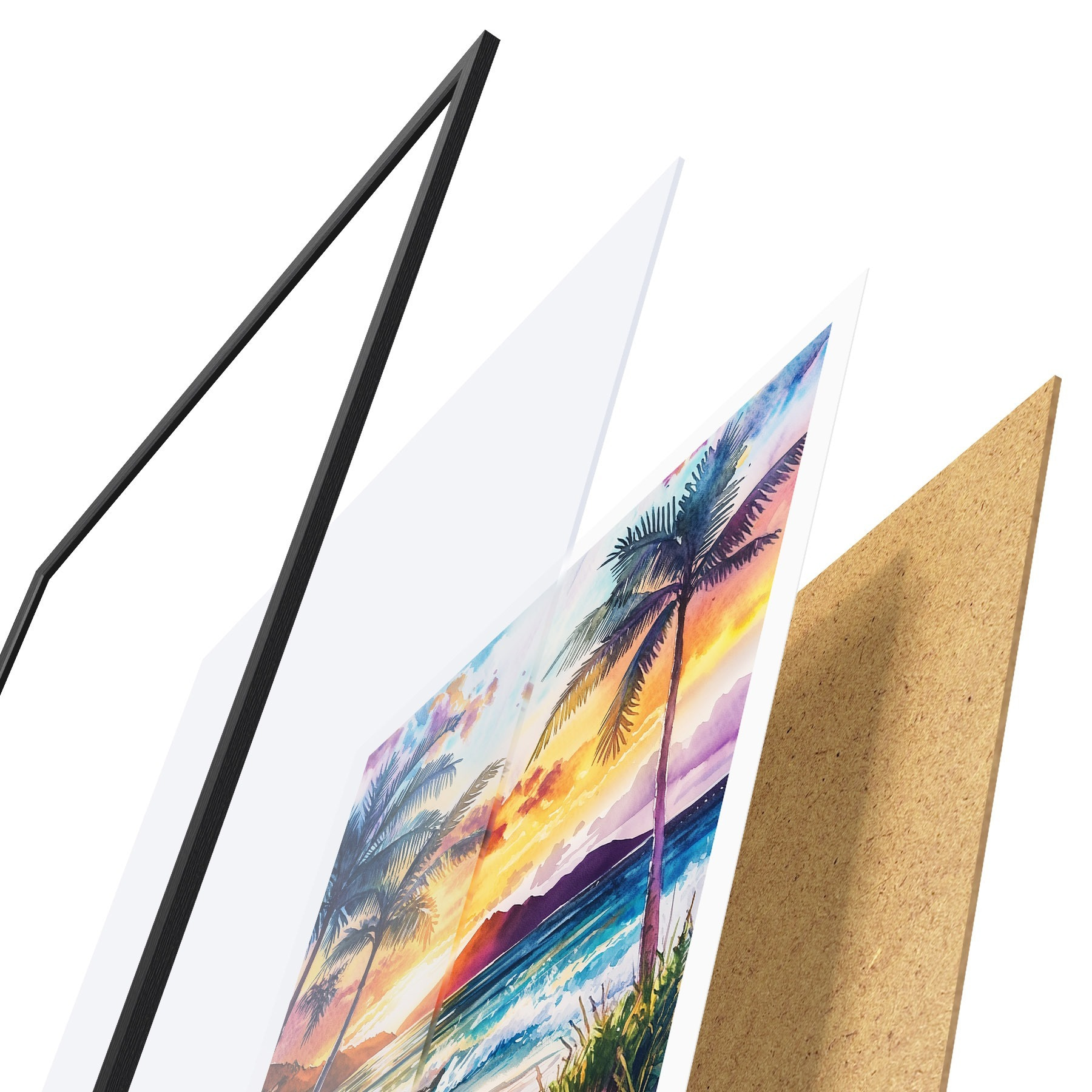 Plakāts sastāv no rāmja, pleksstikla, iespiestā attēla un skaidu plātnes pamatnes. Plakātu var uzreiz piekarināt pie sienas, pateicoties aizmugurē esošajiem stiprinājumiem.