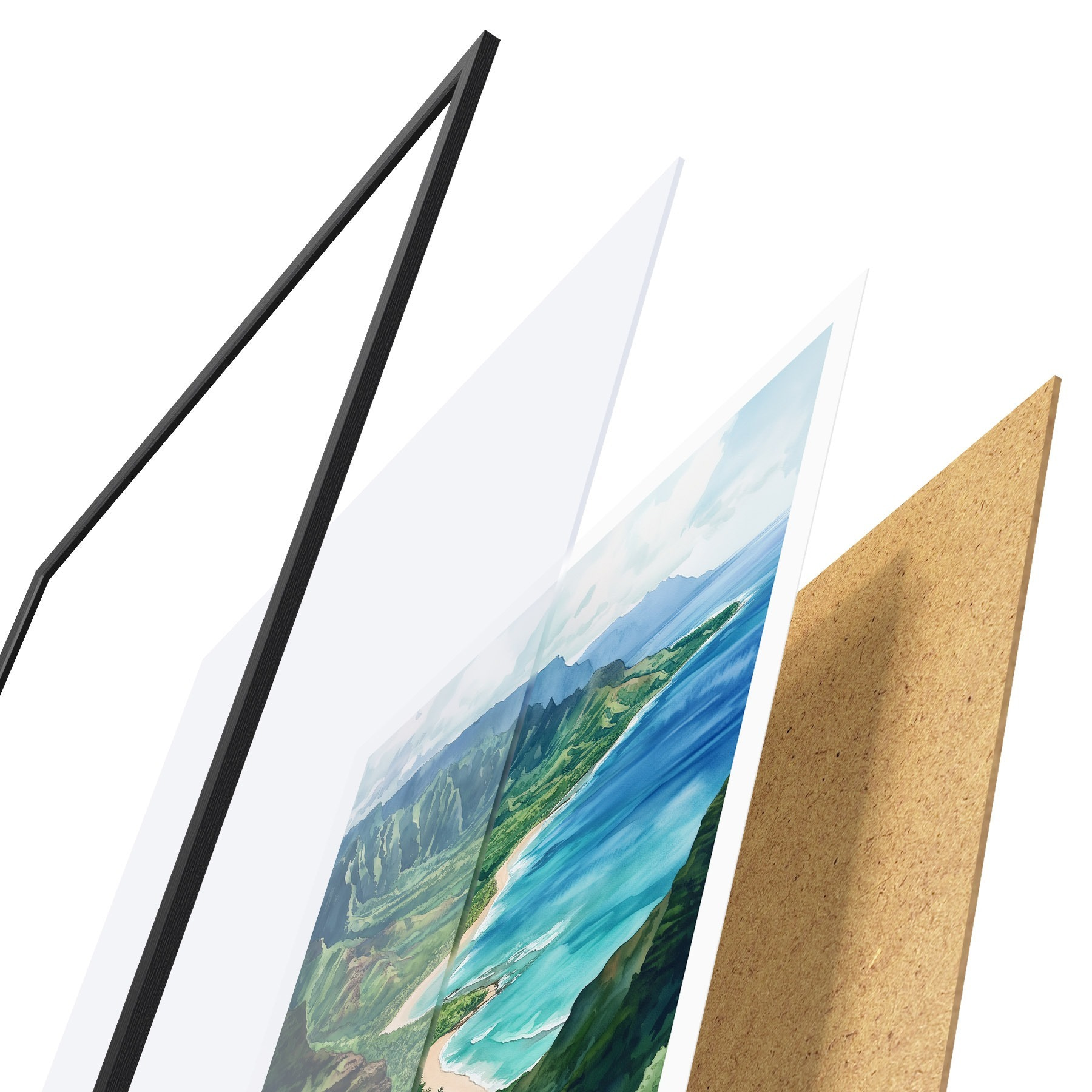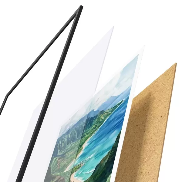 Plakāts sastāv no rāmja, pleksstikla, iespiestā attēla un skaidu plātnes pamatnes. Plakātu var uzreiz piekarināt pie sienas, pateicoties aizmugurē esošajiem stiprinājumiem.