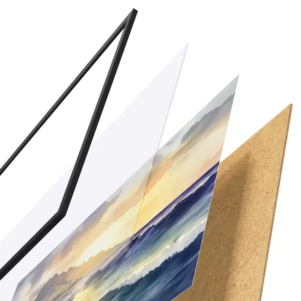 Plakāts sastāv no rāmja, pleksstikla, iespiestā attēla un skaidu plātnes pamatnes. Plakātu var uzreiz piekarināt pie sienas, pateicoties aizmugurē esošajiem stiprinājumiem.