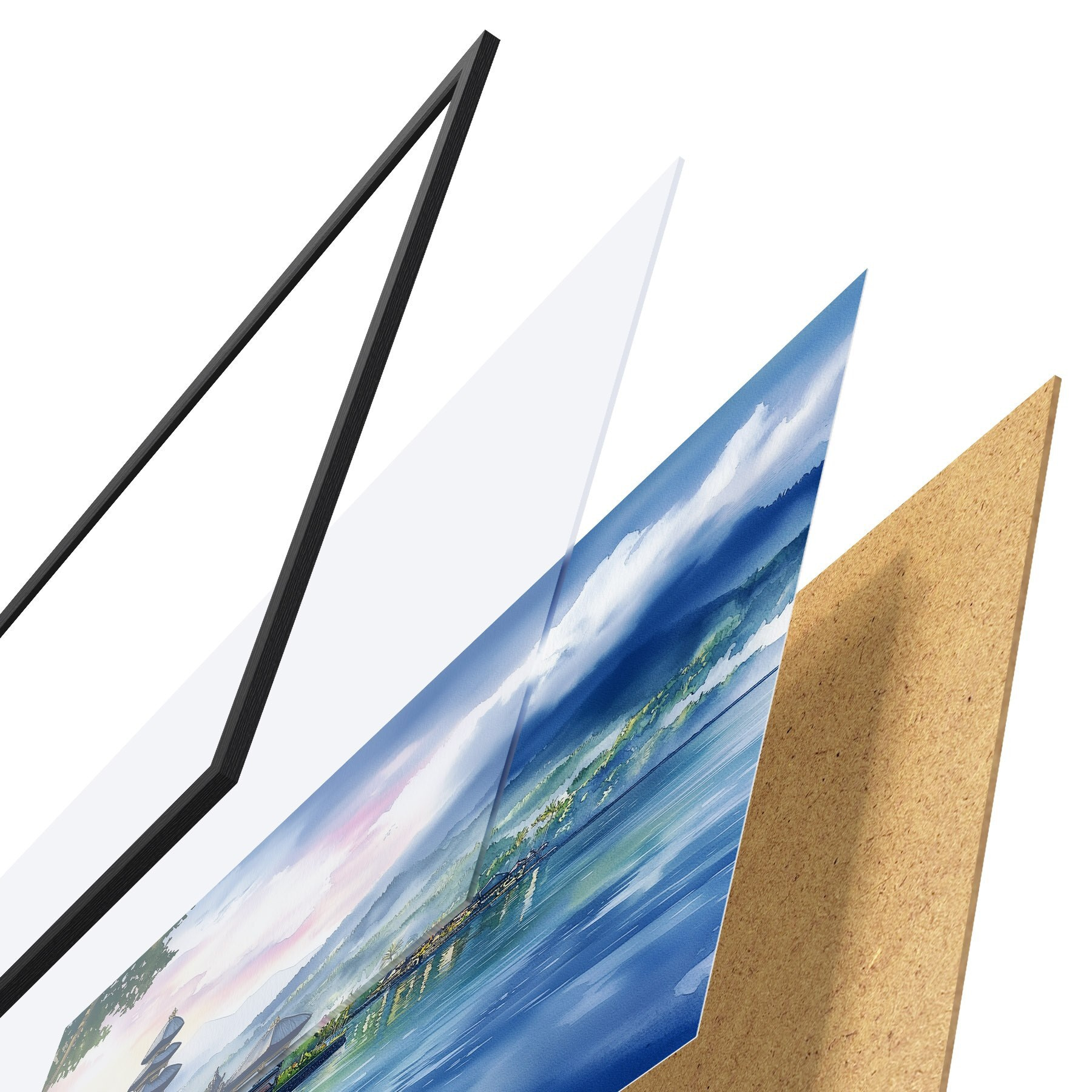 Plakāts sastāv no rāmja, pleksstikla, iespiestā attēla un skaidu plātnes pamatnes. Plakātu var uzreiz piekarināt pie sienas, pateicoties aizmugurē esošajiem stiprinājumiem.