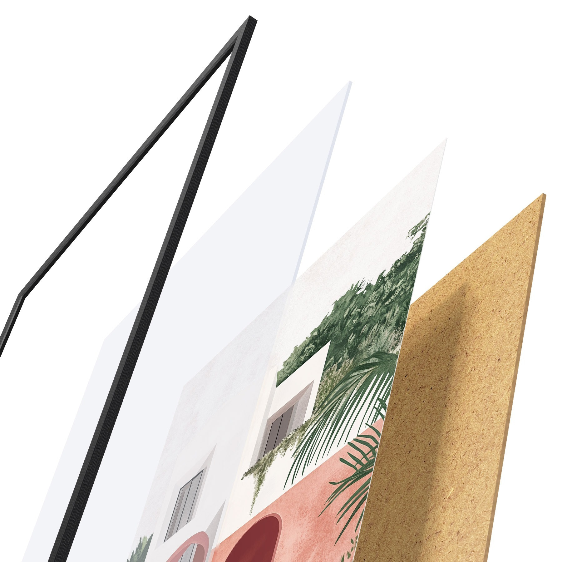 Plakāts sastāv no rāmja, pleksstikla, iespiestā attēla un skaidu plātnes pamatnes. Plakātu var uzreiz piekarināt pie sienas, pateicoties aizmugurē esošajiem stiprinājumiem.