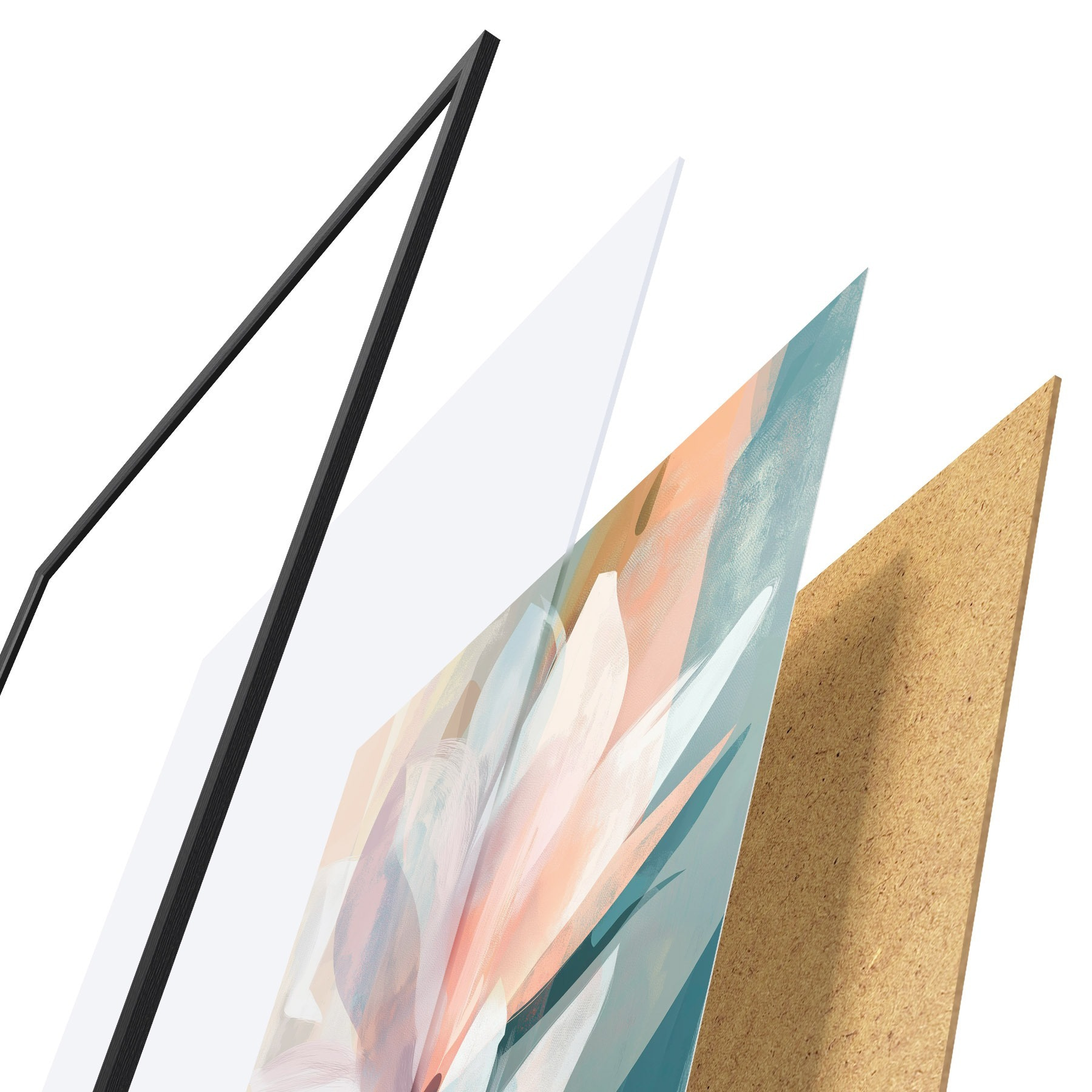 Plakāts sastāv no rāmja, pleksstikla, iespiestā attēla un skaidu plātnes pamatnes. Plakātu var uzreiz piekarināt pie sienas, pateicoties aizmugurē esošajiem stiprinājumiem.