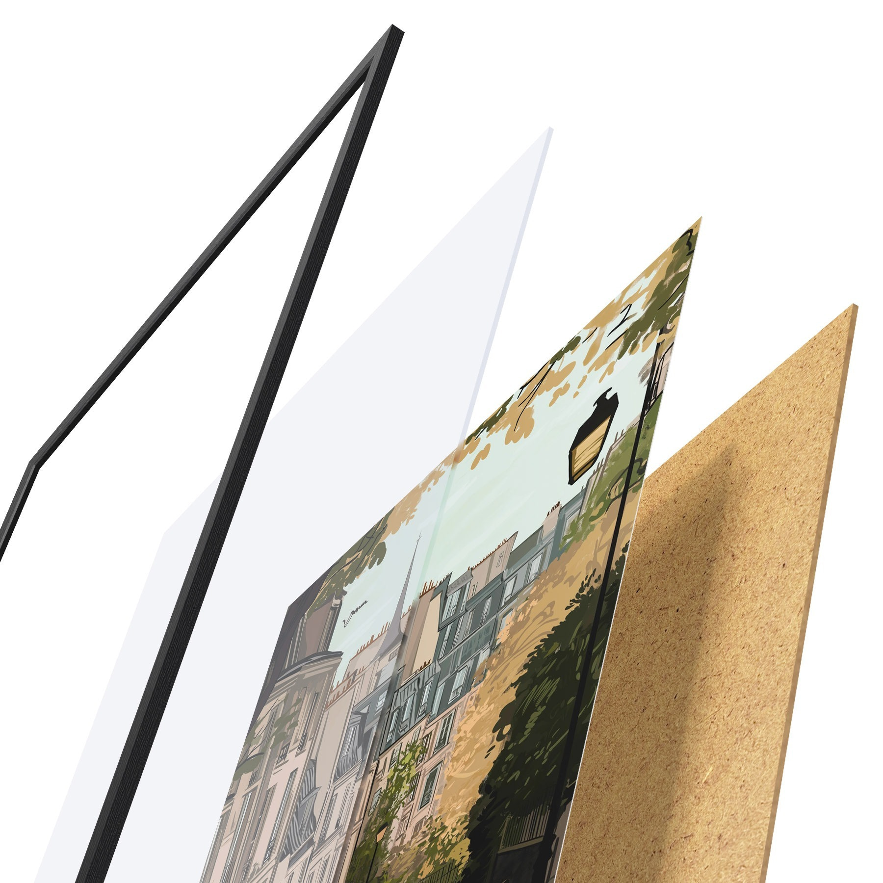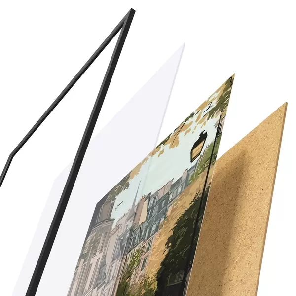 Plakāts sastāv no rāmja, pleksstikla, iespiestā attēla un skaidu plātnes pamatnes. Plakātu var uzreiz piekarināt pie sienas, pateicoties aizmugurē esošajiem stiprinājumiem.