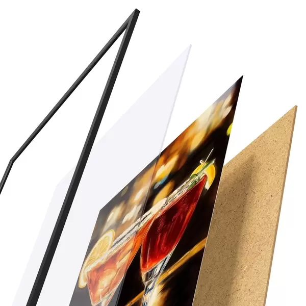 Plakāts sastāv no rāmja, pleksstikla, iespiestā attēla un skaidu plātnes pamatnes. Plakātu var uzreiz piekarināt pie sienas, pateicoties aizmugurē esošajiem stiprinājumiem.