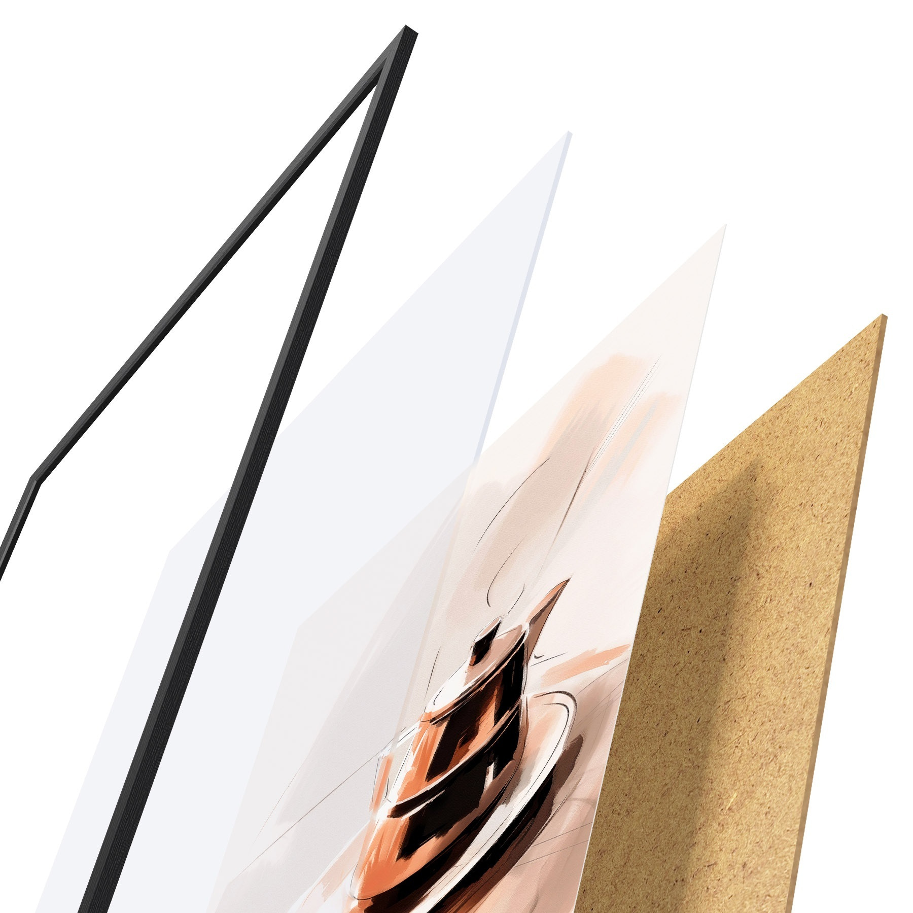 Plakāts sastāv no rāmja, pleksstikla, iespiestā attēla un skaidu plātnes pamatnes. Plakātu var uzreiz piekarināt pie sienas, pateicoties aizmugurē esošajiem stiprinājumiem.