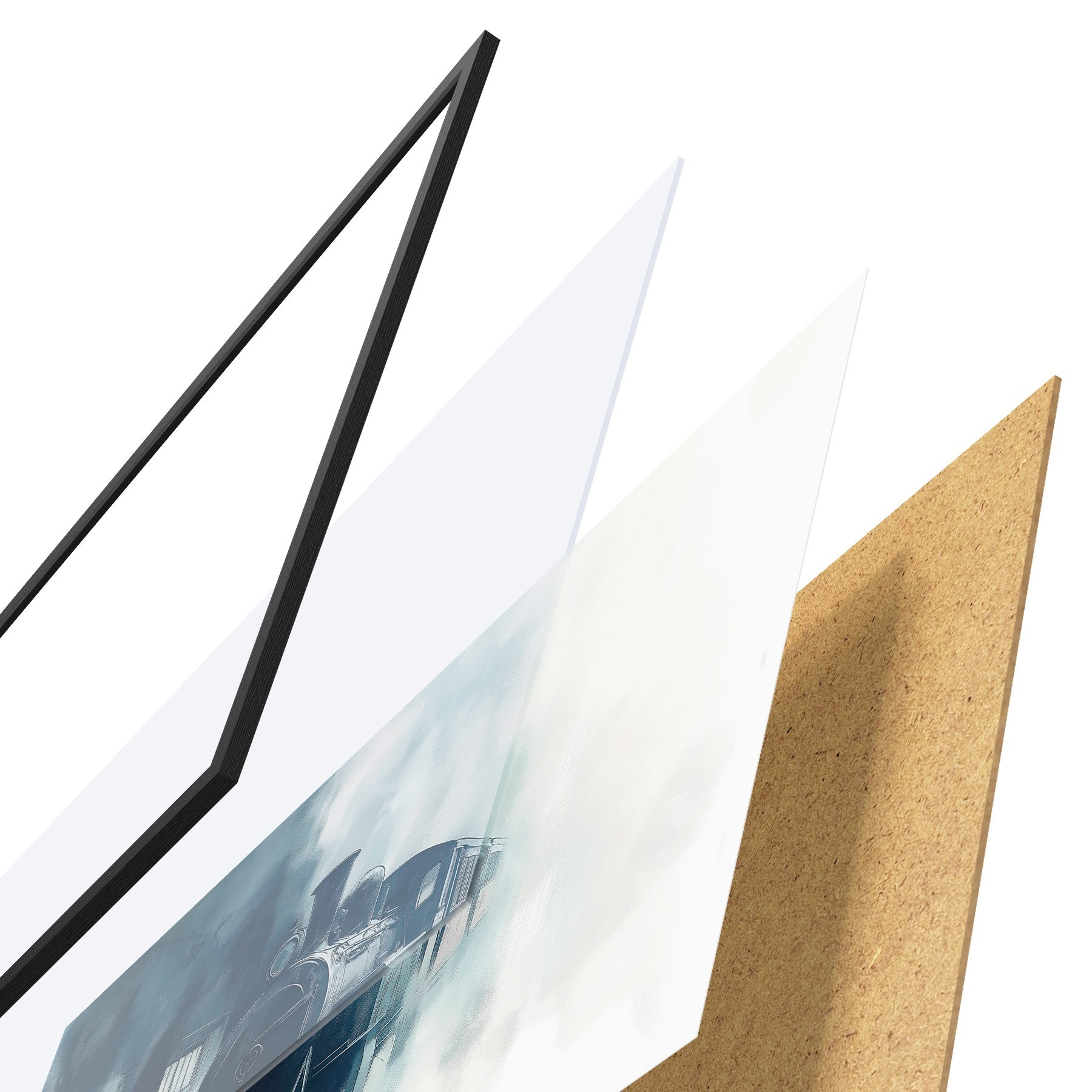 Plakāts sastāv no rāmja, pleksstikla, iespiestā attēla un skaidu plātnes pamatnes. Plakātu var uzreiz piekarināt pie sienas, pateicoties aizmugurē esošajiem stiprinājumiem.