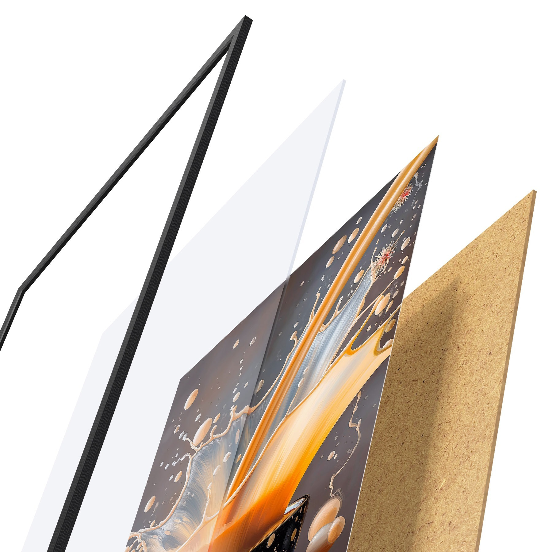 Plakāts sastāv no rāmja, pleksstikla, iespiestā attēla un skaidu plātnes pamatnes. Plakātu var uzreiz piekarināt pie sienas, pateicoties aizmugurē esošajiem stiprinājumiem.