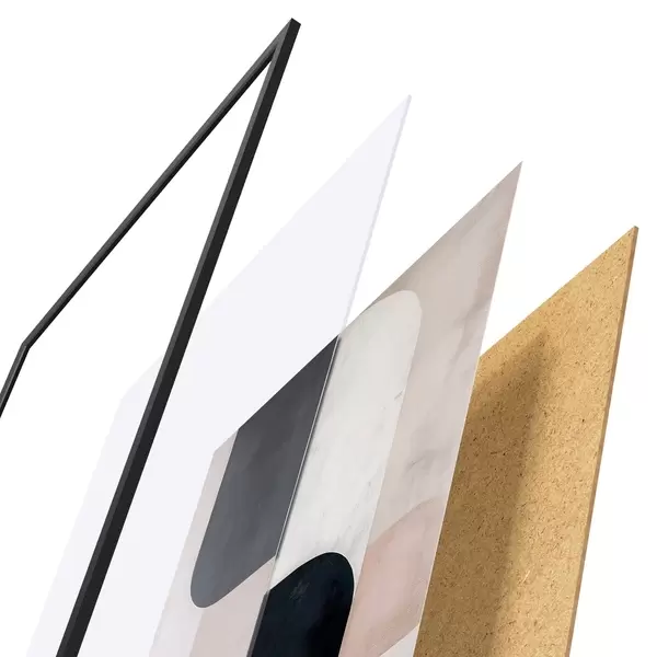 Plakāts sastāv no rāmja, pleksstikla, iespiestā attēla un skaidu plātnes pamatnes. Plakātu var uzreiz piekarināt pie sienas, pateicoties aizmugurē esošajiem stiprinājumiem.