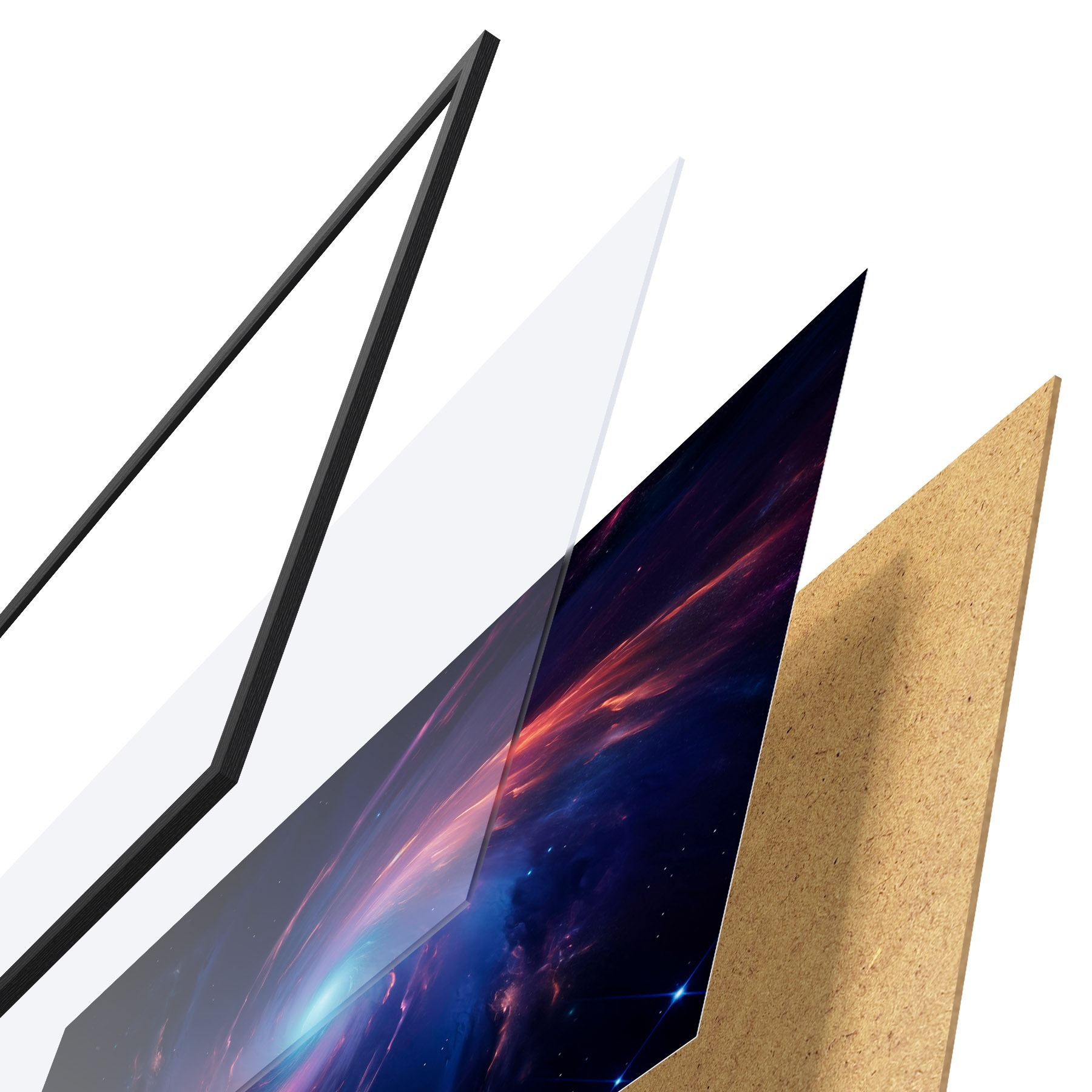 Plakāts sastāv no rāmja, pleksstikla, iespiestā attēla un skaidu plātnes pamatnes. Plakātu var uzreiz piekarināt pie sienas, pateicoties aizmugurē esošajiem stiprinājumiem.