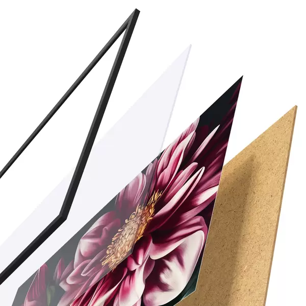 Plakāts sastāv no rāmja, pleksstikla, iespiestā attēla un skaidu plātnes pamatnes. Plakātu var uzreiz piekarināt pie sienas, pateicoties aizmugurē esošajiem stiprinājumiem.