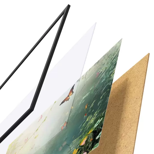 Plakāts sastāv no rāmja, pleksstikla, iespiestā attēla un skaidu plātnes pamatnes. Plakātu var uzreiz piekarināt pie sienas, pateicoties aizmugurē esošajiem stiprinājumiem.