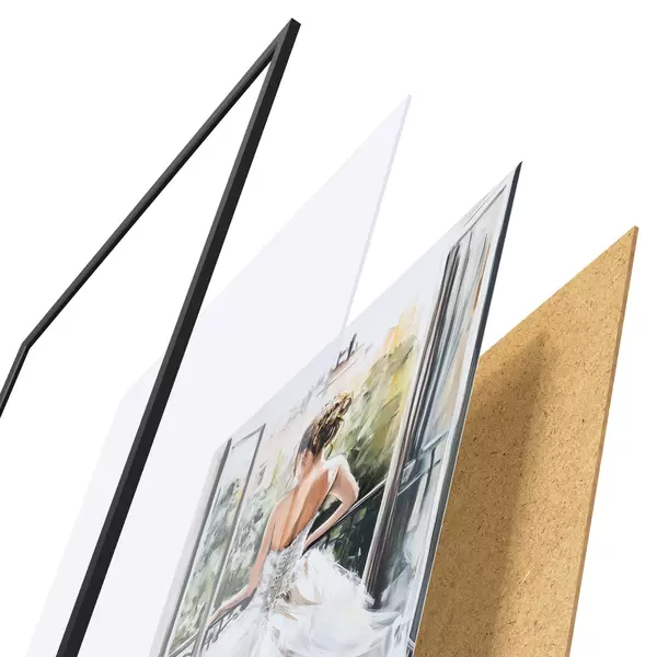 Plakāts sastāv no rāmja, pleksstikla, iespiestā attēla un skaidu plātnes pamatnes. Plakātu var uzreiz piekarināt pie sienas, pateicoties aizmugurē esošajiem stiprinājumiem.