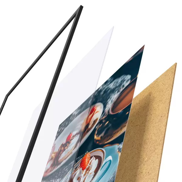 Plakāts sastāv no rāmja, pleksstikla, iespiestā attēla un skaidu plātnes pamatnes. Plakātu var uzreiz piekarināt pie sienas, pateicoties aizmugurē esošajiem stiprinājumiem.