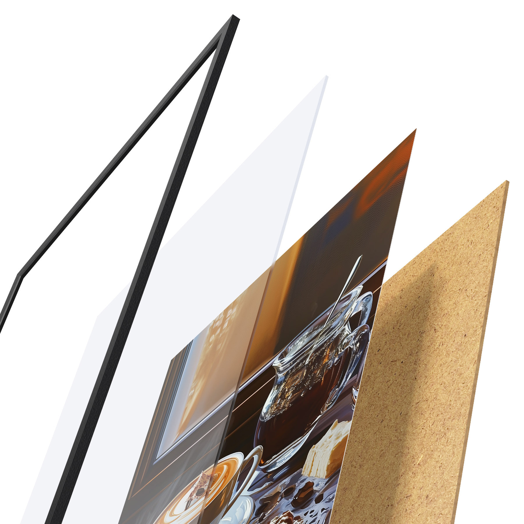 Plakāts sastāv no rāmja, pleksstikla, iespiestā attēla un skaidu plātnes pamatnes. Plakātu var uzreiz piekarināt pie sienas, pateicoties aizmugurē esošajiem stiprinājumiem.