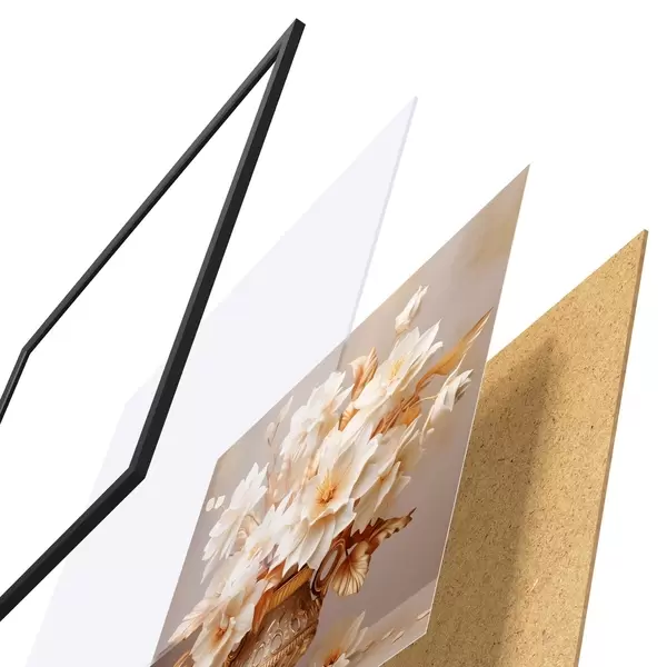 Plakāts sastāv no rāmja, pleksstikla, iespiestā attēla un skaidu plātnes pamatnes. Plakātu var uzreiz piekarināt pie sienas, pateicoties aizmugurē esošajiem stiprinājumiem.