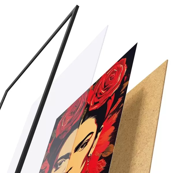 Plakāts sastāv no rāmja, pleksstikla, iespiestā attēla un skaidu plātnes pamatnes. Plakātu var uzreiz piekarināt pie sienas, pateicoties aizmugurē esošajiem stiprinājumiem.