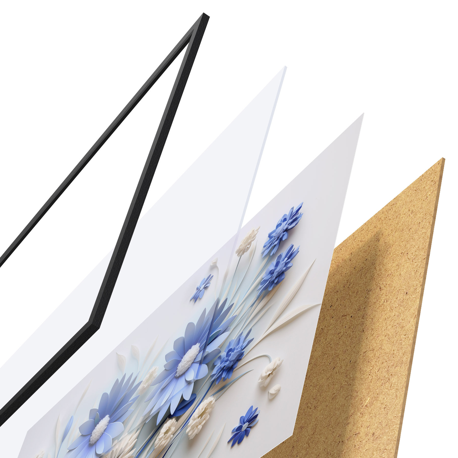 Plakāts sastāv no rāmja, pleksstikla, iespiestā attēla un skaidu plātnes pamatnes. Plakātu var uzreiz piekarināt pie sienas, pateicoties aizmugurē esošajiem stiprinājumiem.