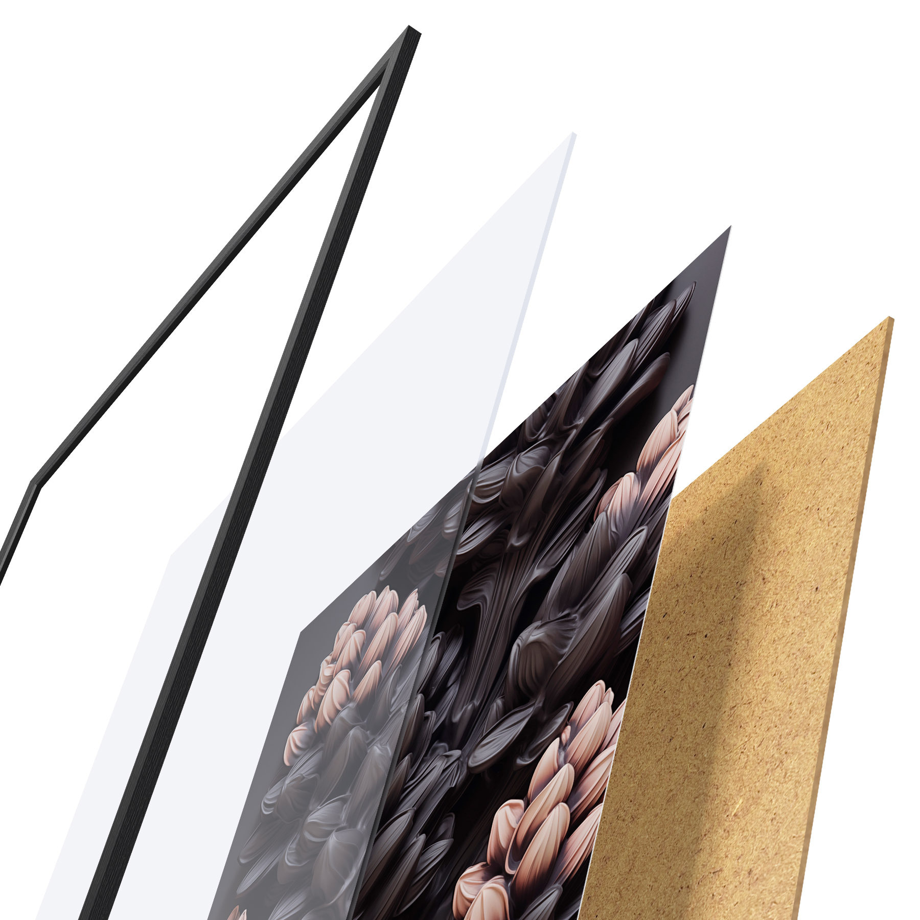 Plakāts sastāv no rāmja, pleksstikla, iespiestā attēla un skaidu plātnes pamatnes. Plakātu var uzreiz piekarināt pie sienas, pateicoties aizmugurē esošajiem stiprinājumiem.