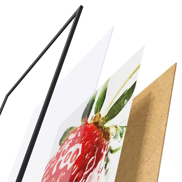 Plakāts sastāv no rāmja, pleksstikla, iespiestā attēla un skaidu plātnes pamatnes. Plakātu var uzreiz piekarināt pie sienas, pateicoties aizmugurē esošajiem stiprinājumiem.