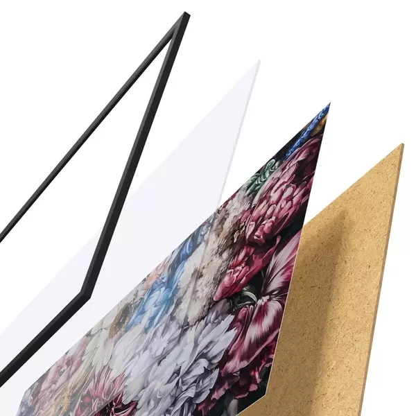 Plakāts sastāv no rāmja, pleksstikla, iespiestā attēla un skaidu plātnes pamatnes. Plakātu var uzreiz piekarināt pie sienas, pateicoties aizmugurē esošajiem stiprinājumiem.