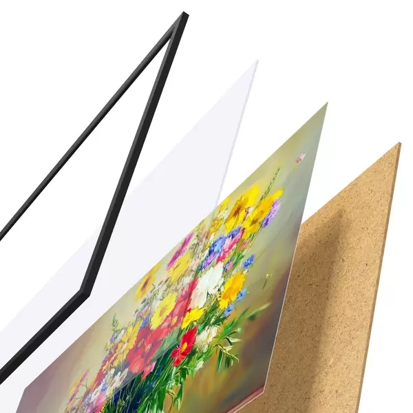 Plakāts sastāv no rāmja, pleksstikla, iespiestā attēla un skaidu plātnes pamatnes. Plakātu var uzreiz piekarināt pie sienas, pateicoties aizmugurē esošajiem stiprinājumiem.