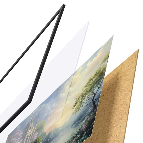 Plakāts sastāv no rāmja, pleksstikla, iespiestā attēla un skaidu plātnes pamatnes. Plakātu var uzreiz piekarināt pie sienas, pateicoties aizmugurē esošajiem stiprinājumiem.