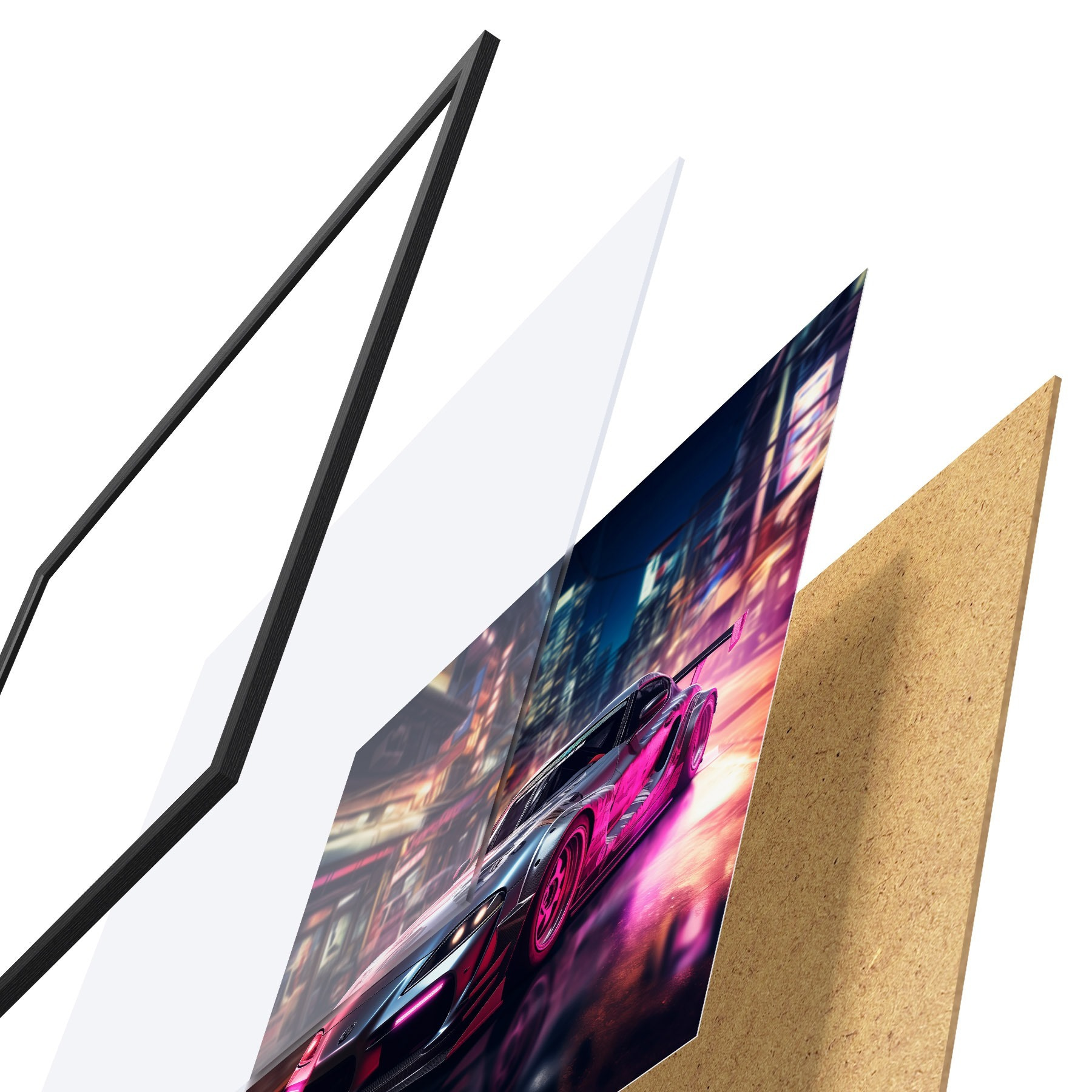 Plakāts sastāv no rāmja, pleksstikla, iespiestā attēla un skaidu plātnes pamatnes. Plakātu var uzreiz piekarināt pie sienas, pateicoties aizmugurē esošajiem stiprinājumiem.