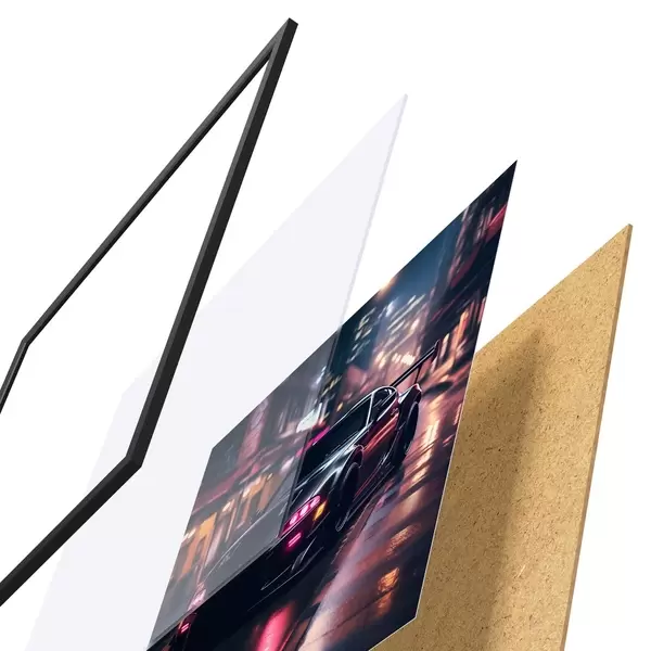Plakāts sastāv no rāmja, pleksstikla, iespiestā attēla un skaidu plātnes pamatnes. Plakātu var uzreiz piekarināt pie sienas, pateicoties aizmugurē esošajiem stiprinājumiem.