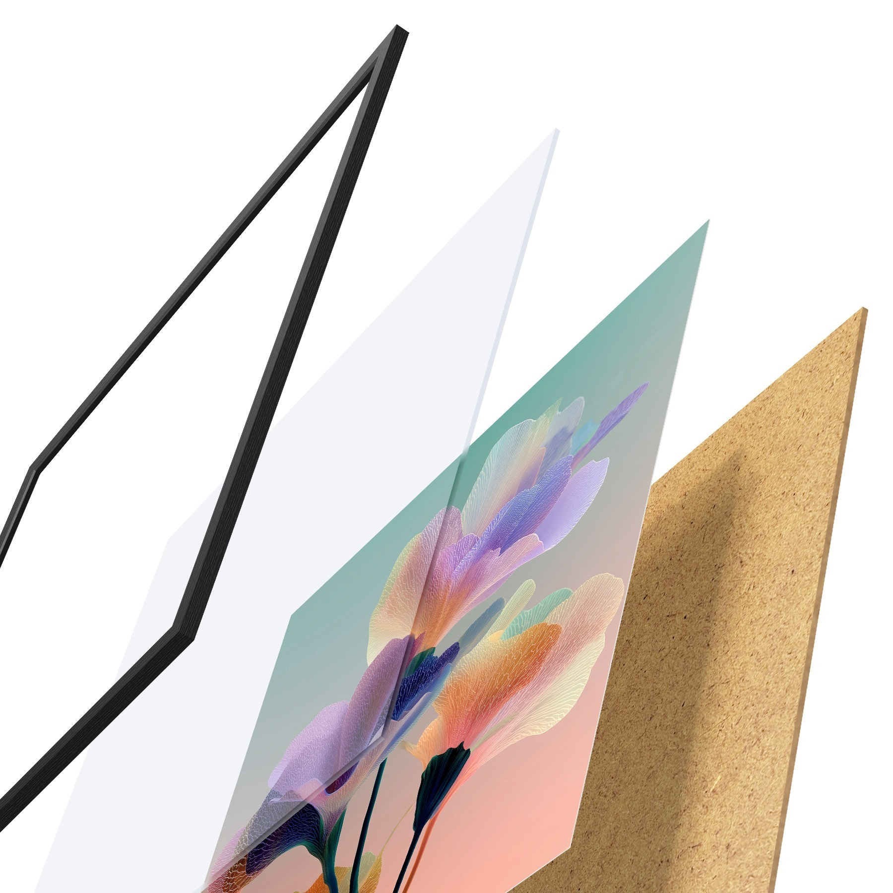 Plakāts sastāv no rāmja, pleksstikla, iespiestā attēla un skaidu plātnes pamatnes. Plakātu var uzreiz piekarināt pie sienas, pateicoties aizmugurē esošajiem stiprinājumiem.