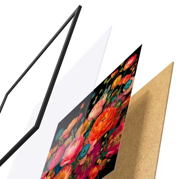 Plakāts sastāv no rāmja, pleksstikla, iespiestā attēla un skaidu plātnes pamatnes. Plakātu var uzreiz piekarināt pie sienas, pateicoties aizmugurē esošajiem stiprinājumiem.