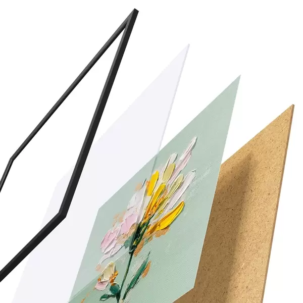 Plakāts sastāv no rāmja, pleksstikla, iespiestā attēla un skaidu plātnes pamatnes. Plakātu var uzreiz piekarināt pie sienas, pateicoties aizmugurē esošajiem stiprinājumiem.