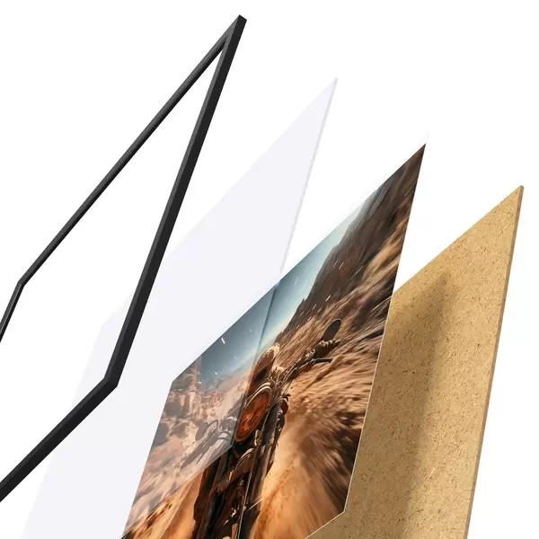 Plakāts sastāv no rāmja, pleksstikla, iespiestā attēla un skaidu plātnes pamatnes. Plakātu var uzreiz piekarināt pie sienas, pateicoties aizmugurē esošajiem stiprinājumiem.