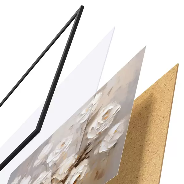 Plakāts sastāv no rāmja, pleksstikla, iespiestā attēla un skaidu plātnes pamatnes. Plakātu var uzreiz piekarināt pie sienas, pateicoties aizmugurē esošajiem stiprinājumiem.