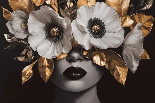 Plakāts Daļēji abstrakts sievietes portrets ar ziediem f44365