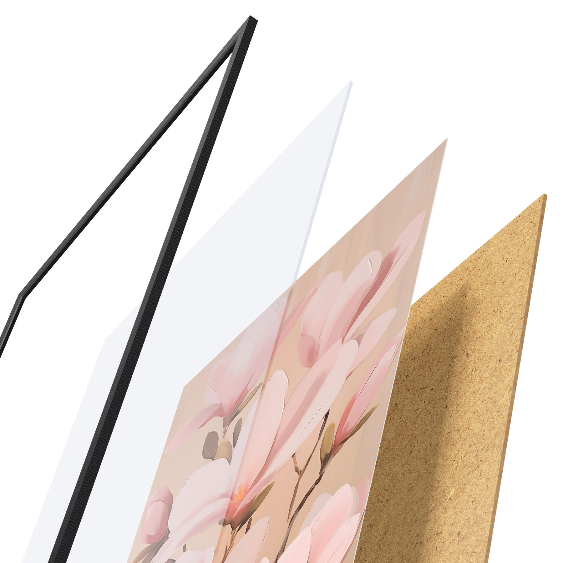 Plakāts sastāv no rāmja, pleksstikla, iespiestā attēla un skaidu plātnes pamatnes. Plakātu var uzreiz piekarināt pie sienas, pateicoties aizmugurē esošajiem stiprinājumiem.