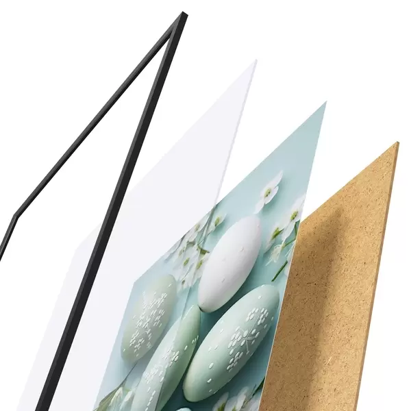 Plakāts sastāv no rāmja, pleksstikla, iespiestā attēla un skaidu plātnes pamatnes. Plakātu var uzreiz piekarināt pie sienas, pateicoties aizmugurē esošajiem stiprinājumiem.