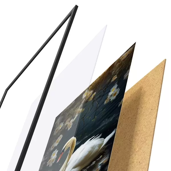 Plakāts sastāv no rāmja, pleksstikla, iespiestā attēla un skaidu plātnes pamatnes. Plakātu var uzreiz piekarināt pie sienas, pateicoties aizmugurē esošajiem stiprinājumiem.