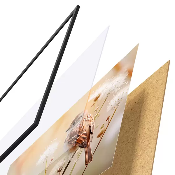 Plakāts sastāv no rāmja, pleksstikla, iespiestā attēla un skaidu plātnes pamatnes. Plakātu var uzreiz piekarināt pie sienas, pateicoties aizmugurē esošajiem stiprinājumiem.