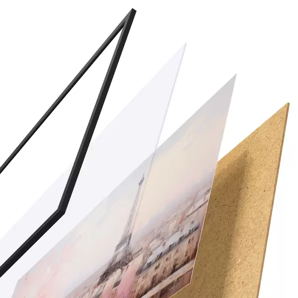 Plakāts sastāv no rāmja, pleksstikla, iespiestā attēla un skaidu plātnes pamatnes. Plakātu var uzreiz piekarināt pie sienas, pateicoties aizmugurē esošajiem stiprinājumiem.