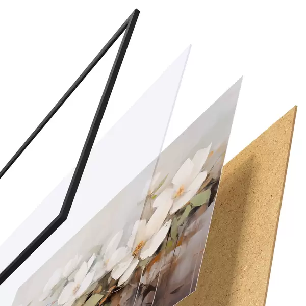 Plakāts sastāv no rāmja, pleksstikla, iespiestā attēla un skaidu plātnes pamatnes. Plakātu var uzreiz piekarināt pie sienas, pateicoties aizmugurē esošajiem stiprinājumiem.